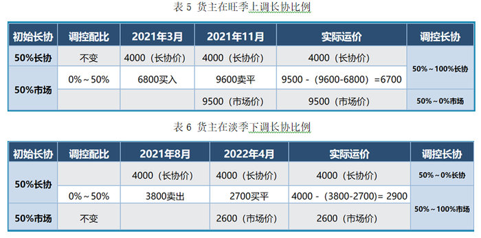 船东和货主可以用集装箱运价期货来调节长协和市场比例,实现更高的运费收入或更低的运费成本。船东和货主可以根据公司实际情况决定下单数量或比例,从而控制调整比例。需要指出的是,即使未来价格方向判断正确,具体调节效果依然由建仓和平仓点位而定,实际收益/成本未必能和长协价/市场价完全相同。