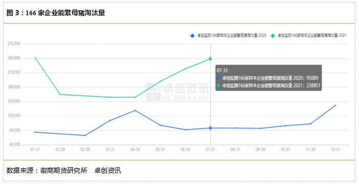 从上图可以看出,样本调查企业能繁母猪淘汰量连续3个月加速淘汰,同时也给生猪市场带来了大量廉价供应,拖累猪价。