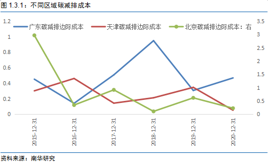 北京碳配额价格波动区间位于【20,100】元/吨;