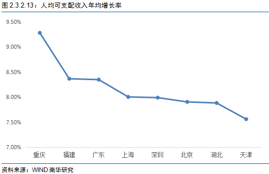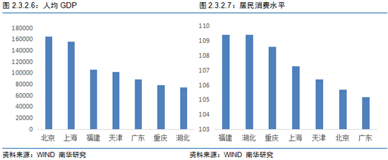 从消费结构驱动去看,要着重关注北京、上海、广东以及重庆。