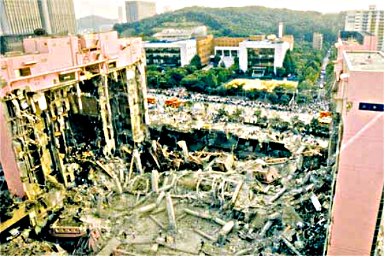 1995年,韩国首尔“三丰大厦”垮塌,造成20人死亡,615人受伤。