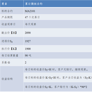 同时,为了帮助客户可以缓慢地建立多头头寸,风险子公司将产品设计成每日观察的期权合约,每日盘后按照期货收盘价结算一定数量的标的,以达到低价分批采购目的。该模式也是我们说的累计期权结构,被广泛地运用到含权贸易中。