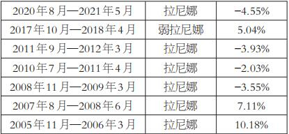 从1980年以来的统计数据来看,全球共发生了13次拉尼娜现象,拉尼娜现象一般持续几个月时间,只有1998年7月发生的拉尼娜现象持续到2001年5月,持续了近3年的时间。拉尼娜现象容易对大豆和玉米产量造成影响,比厄尔尼诺现象造成的减产更为严重。
