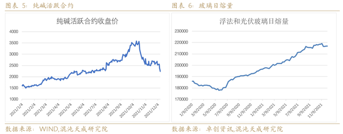 2020年纯碱相对产能过剩,库存一直处于同期高位,2021年在浮法玻璃高和光伏玻璃高利润,玻璃整体产能投产较多,对纯碱用量增加,同时纯碱产量也有较大幅度增加,整体供需差不算太大,而市场被玻璃投产预期带动,社会囤货需求不断增加,纯碱库存去化明显,价格创下历史新高。对于未来纯碱的供需判断,我们主要关注点在于纯碱需求增长预期的强弱。