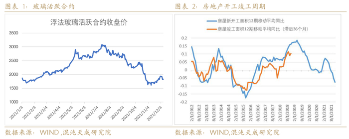 2021年大事较多,宏观波动很大,部分商品跟随煤炭和房地产走出过山车行情。房地产行业受政策影响较大,市场从火热到冰冻,充分显示了国家政策对房地产的态度,在“十四五”和未来的经济规划中房地产地位将逐步弱化,而当前房地产在经济中的比重较大,我们认为经济去房地产化需要一个循序渐进的过程,需要“先立后破”,根据中央经济会议指示,2022年政府主抓稳定经济大盘,房地产行业要良性循环健康发展,政策推动保竣工保交房,根据房地产建设周期推算,2022年待竣工量仍较大,玻璃需求较好,而玻璃产能在2021年高利润下基本已达上限,预期玻璃价格仍有波段向上空间。