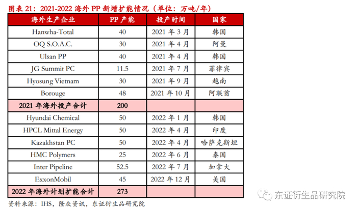 3.3、海外PP扩能对中国市场的影响将逐渐回归