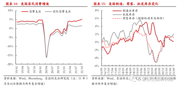 展望2022年,对于海外需求,美国的财政救助对消费的拉动效果已经衰减,若剔除通胀影响,美国居民消费增速已基本稳定在1%。但疫情下商品对服务的替代以及商品补库的预期仍将在2022年二季度前对于美国的需求产生一定的支撑,需求增速回落的速度将相对缓慢。而对于航运,我们认为在疫情的扰动和消费的支撑下,运价、劳动力和港口问题在短时间内难有明显的改善,航运问题在中期继续阻碍着聚烯烃区域间的调配。