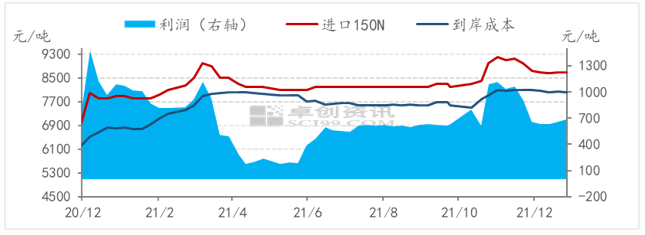 图2 2020-2021年国内150N理论利润走势图