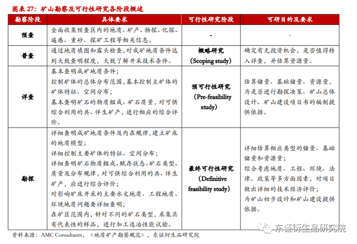 具体而言,矿山从首次发现到实际投产大致需要经历两大阶段:勘察及可行性研究阶段,以及施工建设阶段。
