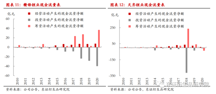 实际上,从各企业的现金流量表可以看出,单凭自身经营产生的现金流均难以支持新项目开发建设所需的巨量资金,新项目资本开支所需的资金大多来自企业的融资活动而非经营活动。这样的模式有利有弊,一方面外部融资给企业提供了必要的资金支持,但另一方面,这使得锂矿当前的产能扩张对外部资金的依赖度极高,产能扩张一定程度上受限于外部融资环境、以及出资方对行业前景的评估,企业一定程度上缺乏完全自主权。