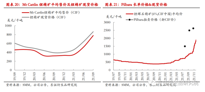 但这一情况正在逐步改善。今年以来,以Pilbara为代表的锂矿商已逐步意识到这一问题,并做出应对。具体而言,Pilbara于今年7月上线了BMX线上拍卖平台,并于7、9、10月分别举行了三次锂精矿线上拍卖,最终成交价分别为1250、2240和2350美元/干吨,均远超当期现货价格,也更是高于与包销客户签订的长单销售价。Pilbara在二季报中也提到,现货售价和长协价格间的大幅脱节是值得注意的新现象。作为应对,Pilbara一方面计划扩大拍卖平台销售量,包括Ngungaju复产后的全部产量,以尽可能扩大现货价格上涨带来的收益;另一方面,Pilbara计划与包销客户开展谈判,考虑在长协定价公式中加入现货价格影响因子,并预期将长协价格提升至1650-1800美元/干吨(SC6,CIF中国)。