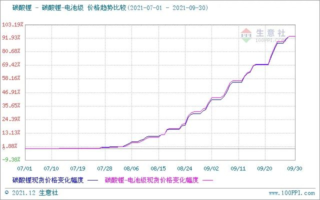 第二轮上涨区间(7.1-9.30):工业级碳酸锂涨幅93.76%、电池级碳酸锂涨幅93.81%