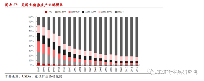 对标美国生猪产业链整合,我国现阶段行业集中度低,养殖下游屠宰厂商集中度较养殖行业更低,“大行业、小企业”格局下议价空间被压缩。因此,区别于美国自下而上由屠宰推动的行业整合,我国将以养殖场横向整合为起点,养殖行业内规模企业向下游屠宰、加工厂商纵向整合为主要一体化路径。