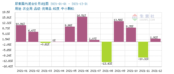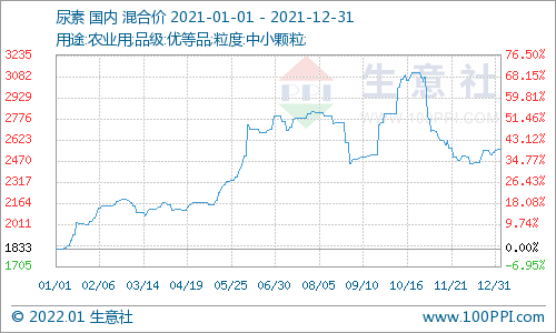生意社:2021年尿素全年涨幅39.20% 创10年新高