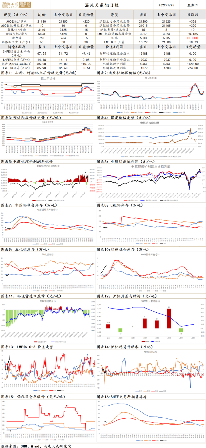 美联储议息会议将于本周进行,俄罗斯乌克兰地缘政治紧张局势加剧,市场避险情绪升温,多头获利了结导致铝价近日出现回调。