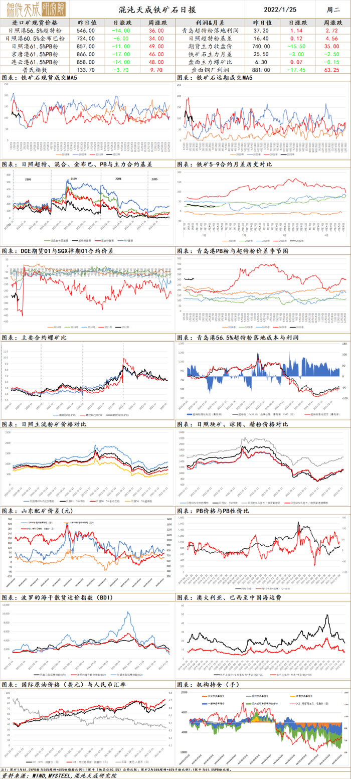 需求端,昨日唐山重启重污染天气二级响应,叠加生态环境部要求在冬奥会期间依法对部分高污染企业进行管控,预计1月下旬至2月,国内高炉生产仍将受限,铁水产量可能再度下滑。此外,随着春节前钢厂补库基本结束,近期铁矿市场活跃度减弱,昨日铁矿港口现货成交及远期美元货成交均有所回落,但目前PBF落地利润依然为负,超特粉落地利润仍为正,显示中低品国内外需求表现继续分化。
