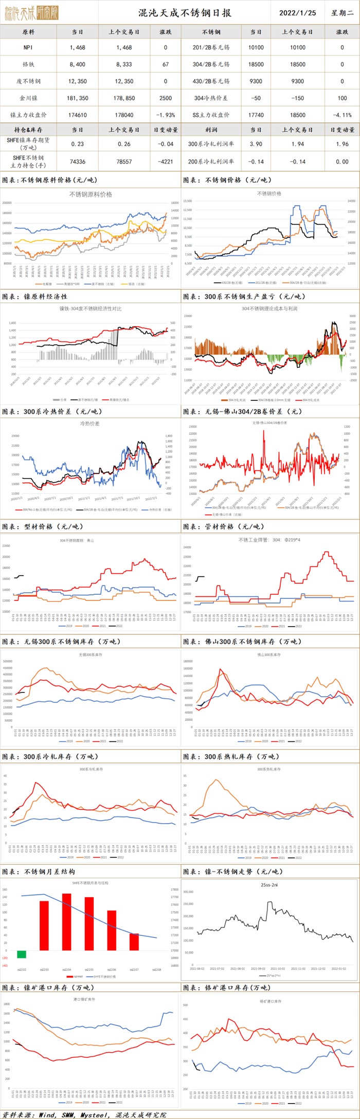 1、1月24日高镍铁1380-1400元/镍(到厂含税);低镍铁5000元/吨(出厂含税)。(Mysteel)