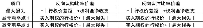 需要注意的是,倘若权利金净收支为负值,则仅有盈亏两平点1,无盈亏两平点2,因为假如权利金净收支为负值,则损益结构图的另一边会恒小于0,但仍较单买策略的权利金全部损失为低。
