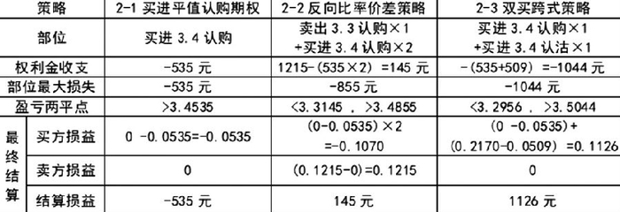 根据当时价格,分别试算买进平值看涨期权、反向比率价差策略,以及双买跨式策略比较: