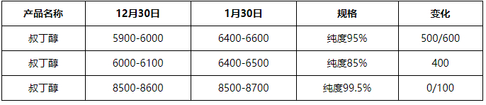 2022年1月份来看,国内TBA市场行情整体处于上涨走势。其中95%纯度TBA仍缺少现货交易,无水叔丁醇厂家受需求弱势的影响,价格以持稳运行为主。