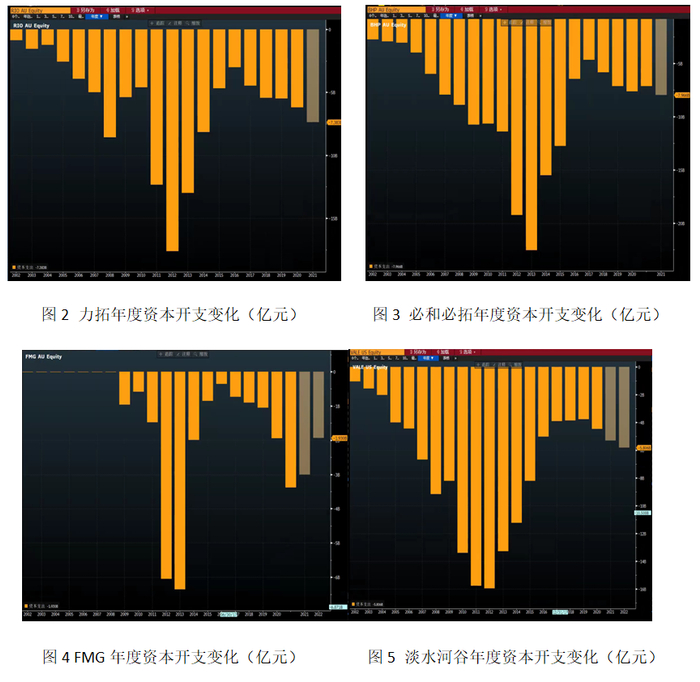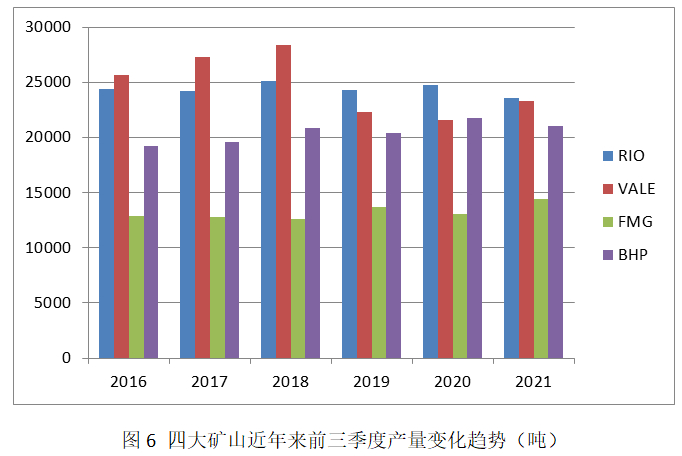 但从2018年开始,四大矿山的资本支出逐年增加,开启了新一轮产能扩张周期,部分新增产能已开始在今年落地。BHP旗下位于西澳大利亚州皮尔巴拉中部的South Flank矿区在2021年二季度已实现了首批铁矿石的投产。South Flank是一个年产8000万吨的可维持性矿山,价值36亿美元,投产后将成为西澳大利亚技术最先进的优质铁矿。它与现有的MAC矿区一起,将形成世界上最大的铁矿石运营中心,年产量约为1.45亿吨。South Flank的优质矿石将使BHP 西澳铁矿石业务的平均铁矿石品位从61%提高到62%,块矿的总体比例从25%提高到30-33%。力拓在2018年10月1日宣布投资15.5亿美元,以维持位于RobeRiver Joint Venture两个项目的产能。West Angelas铁矿C矿床和D矿床已于去年6月份投入试运行,并于8月份交付第一批铁矿石。最值得关注的仍是原Koodaideri项目(现更名为Gudai-Darri)。2018年11月29日,另外力拓在2018年底批准的位于皮尔巴拉地区的Koodaideri项目,原预计在2019年开工,2021年底实现投产,目标年产能4300万吨。虽然去年疫情引发各州边界封锁,导致劳动力短缺,员工招募工作被迫延期,但第一批铁矿石预计仍可在2022年一季度交付。一旦新矿区Koodaideri项目第一期完工并正式出矿,力拓预计就可以在2023年实现其3.6亿吨/年的产能目标。未来两年每年将有3000万吨的新增产量释放。FMG之前投产的Eliwana项目在去年一季度也已交付第一批铁矿石。该项目的投产虽并不会显著增加FMG的现有产能,但是会提升其产品品位,成为其未来中品低铝矿的主要来源。随着其新矿区开发的完成,年产能将达到3000万吨,西皮粉年产量将达到4000万吨。而铁桥项目作为FMG年产2200万吨的增产项目,预计将于2022年底投产,并在12个月内全面达产。主要生产含铁67%,杂质含量低的精粉,将为FMG开启高品位造球精粉的大门。淡水河谷方面,基于其年度产能4亿吨的目标,其产量增速在未来几年将逐年加快,未来将重回全球第一大铁矿石生产商的位置。