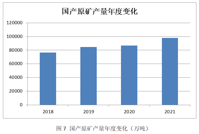 从2014年开始,国产原矿产量呈现出逐年下降的趋势,2018年产量下滑至近10年的新低。但近几年随着铁矿价格持续走高,刺激国内矿山开采积极性,年产量出现稳步回升。2021年上半年铁矿石价格创出历史新高,使得国产矿新产能的投放明显加速,主要集中在华北主产区。据Mysteel不完全统计,去年上半年河北省共批复铁矿石相关项目78个,而2020年上半年批复的项目数为43个,同比增幅较为明显。去年1-9月铁矿采选业固定资产投资同比增长25%,民间投资增长24%。去年1-6月全国铁矿原矿产量共计4.91亿吨,累计同比增加15.9%,同时也是自2018年以来的历史同期最高值。6月单月产量达到了8787万吨的年内高点。虽然进入下半年后,受安全检查趋严影响,叠加铁矿价格进入下行通道,一定程度抑制了国内矿山的生产积极性,国内原矿产量出现回落,累计同比增速持续回落。进入9月后虽然电力供应趋紧,但对选矿的影响不如采矿明显。2021年全年国产原矿产量累计9.8亿吨,累计同比增加13%。随着国内铁矿资源开发力度的不断加大,预计十四五期间国内精矿的年产量有望增至3.7亿吨。预计2022年国产精粉产量同比增量在1500-2000万吨左右。2021年我国国产矿产量的提升,使得对进口矿的依存度从前几年的80%以上降至75%左右,改善了我国铁矿的供应结构。未来我国在海外布局的铁矿项目也值得期待,位于几内亚的西芒杜铁矿储量巨大,投产后将使得我国铁矿的来源更为多样化。