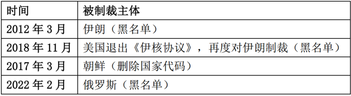2.历史上SWIFT系统的制裁