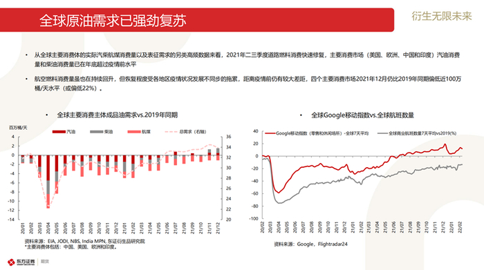 现在全球都处在闲置产能下降以及低库存的环境,这个环境本身就是一个利多油价的环境,再加上俄乌冲突的影响,原油的价格上升空间会很大。疫情之后全球的原油产业整体都是在恢复状态,到去年底也没有完全到恢复到疫情前的水平。全球的闲置产能预计将继续逐步释放,但原油供给量不会快速提升,供给对价格上涨迟钝时比较容易形成油价牛市。