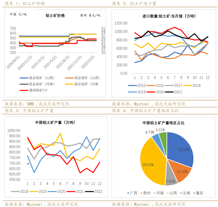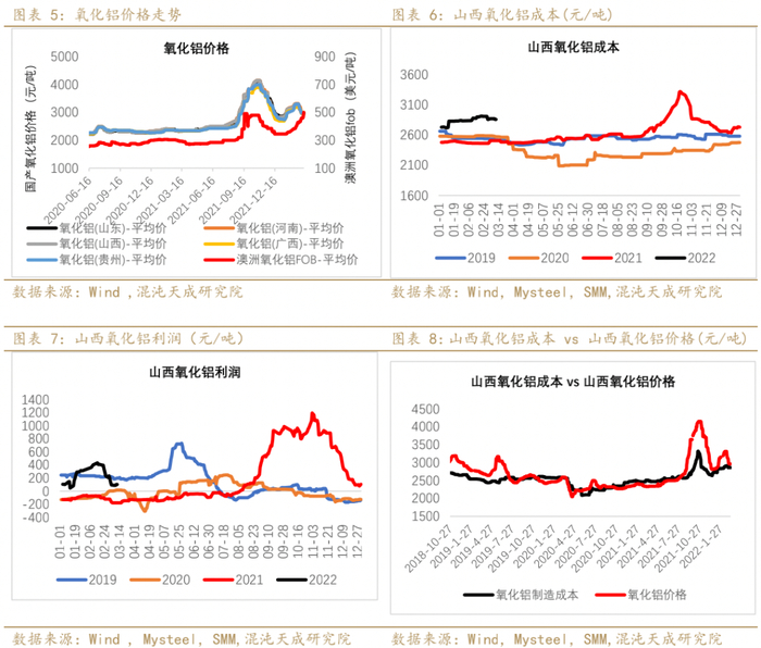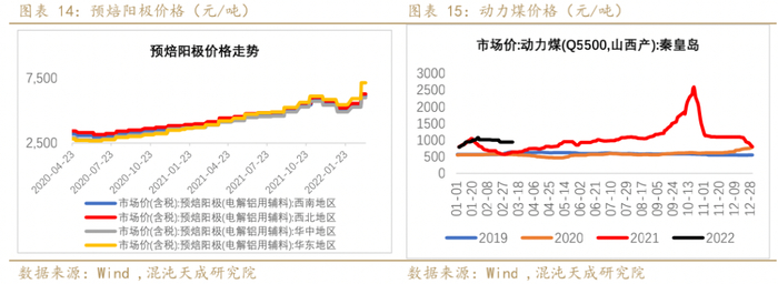 3、 预焙阳极与动力煤:本周预焙阳极价格持稳。全球能源紧张下,海外煤炭供给紧张程度不减;国内保供稳价决心强烈,国家将采取综合措施增加3亿吨的有效产能,对长协价管控力度加严。需注意,增产仍需时间,且当前煤矿大力保供下,市场煤偏紧,自备电厂煤炭外采或较为困难,自备电厂煤炭采购价格或仍将偏高。