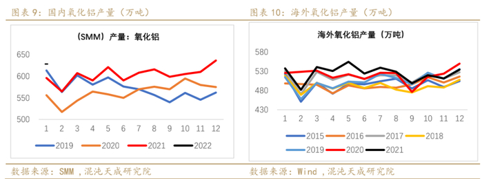 供给端:俄乌冲突下,海外铝供给收紧,国内产能复产进度较快