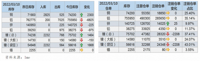 入库,库存增加,注册仓单增加;出库,库存减少,注销仓单减少;