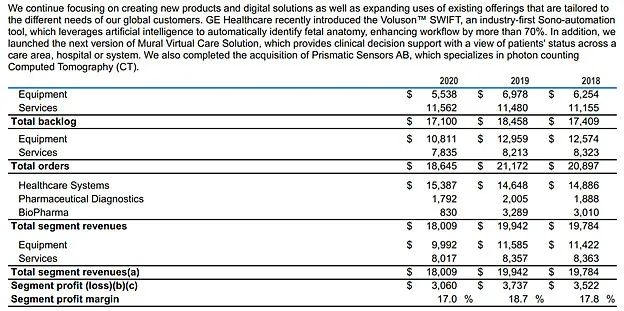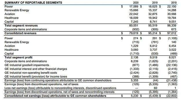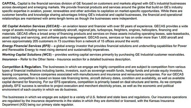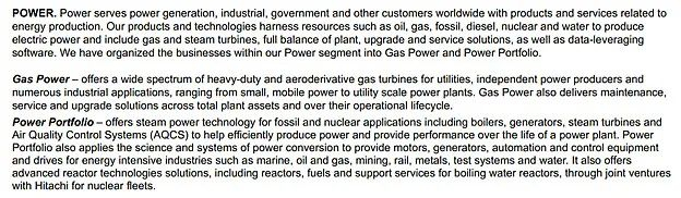 上面两张图是GE的年报中对每一个板块的描述。接下去的表格,将五个板块放到了一起看: