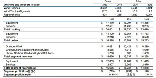 有一个数据在GE的四个工业板块中都很重要,这里提一下:即服务类营收占总营收比例。一般而言,工业行业最赚钱的就是“剃刀-刀片”模型,卖一个剃刀出去可以亏损,但不断卖刀片就可以迅速回本然后大赚,因此高利润率服务类营收占比越高,相对而言这个板块的竞争优势和盈利能力也会越强。2020年传统能源行业服务类营收占总营收比例为62%。这个行业的两个比较重量级的玩家是GE和西门子(SIEGY)。
