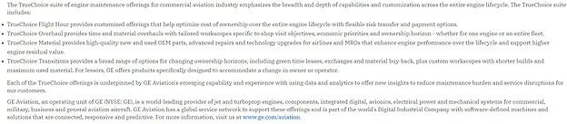 GE的四类主要服务,包括Flight Hour,Overhaul,Material,和Transitions