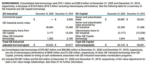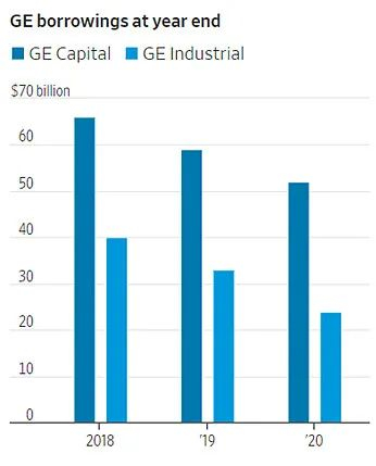这几年GE一直在大力减少负债,GE资本2020年年底同比借贷减少70亿美金,GE工业同比减少70亿美金。