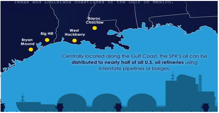 美国炼油厂最大的集中地位于美墨湾沿岸,该区域拥有充足的盐洞(超过500个,已用60个),可通往海运码头、配送管道和炼油厂,在供应中断的情况下,可以安全地储存、提取和快速向炼油厂输送紧急原油。