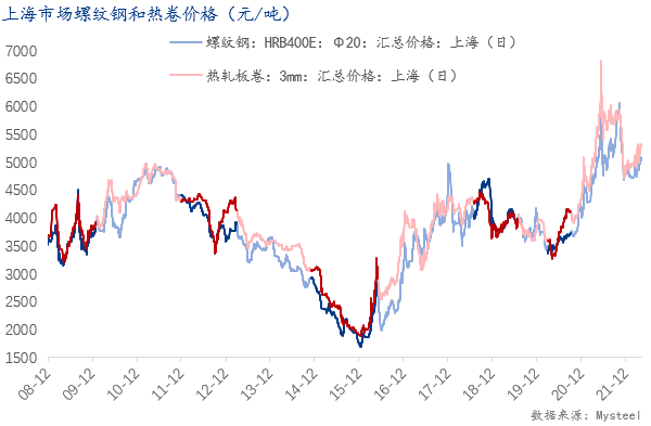 在当前经济下行压力较大的时期中,近期钢材原料及成材的价格可谓是居高不下,尽管近期几个交易日出现短期下滑的趋势,但是从整体供需双弱的基本面来看,钢材价格走势仍然是出乎意料,抛开生产端原材料高企的因素外,主要原因可以归功于市场对海外通胀输入的恐慌以及对国内稳增长等宏观政策的良好预期。稳增长政策着力点就在于这个“稳”字上面,简而言之就是稳定国内宏观经济大盘,保持经济运行在合理区间。从去年下半年开始,央行开始降准降息,为2022年的经济发展定下了基调;进入2021年末以来,从两会、金融委会以及国务院常务会等重大会议来看,今年将必定按照以稳字当头、稳中求进的政策来保持经济的稳定增长,并且GDP的增长目标被定在5.5%,同时将加快实施“十四五”规划。稳增长政策主要可以通过坚持经济建设信心、加大经济刺激力度以及扩大对外金融开放等重要手段来实现对制造业、基建、房地产及消费等行业的稳定和提振作用。在稳增长的背景及目标下,与制造业、基建地产息息相关的钢材乃至黑色系受到市场广泛关注,并被市场寄予厚望,也直接导致近期钢材价格因为市场对后市预期较高而高位运行。
