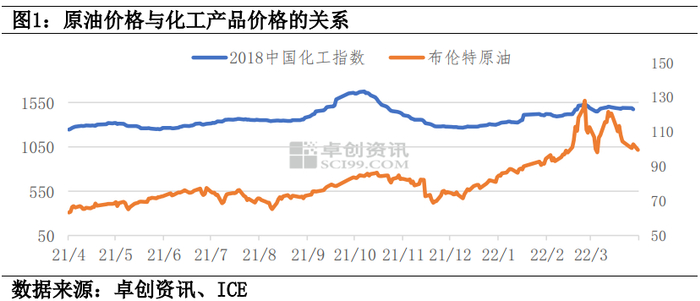 从图1可以看出,原油价格和化工产品的价格具有较高的相关性。今年一月份以来,原油价格上涨幅度较大,但是由于年后以来需求端一直比较低迷,下游对于化工品价格的接受有限,成本传输不畅,导致化工品价格上涨幅度不及成本上涨幅度,在高成本、低需求的情况下,石化企业的盈利受到挤压。