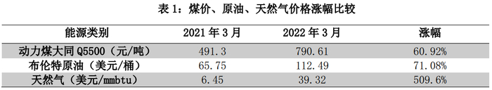 煤化工和石油化工的下游化工产品具有一定的重叠,在高油价下,煤化工出现发展机遇。我国煤炭资源丰富,煤化工的发展具有得天独厚的优势。2021年传统能源价格普遍出现上涨,今年以来地方局势紧张加剧了传统能源价格的上涨,从表1可以看出,相比原油和天然气,煤炭的价格上涨幅度相对较低。
