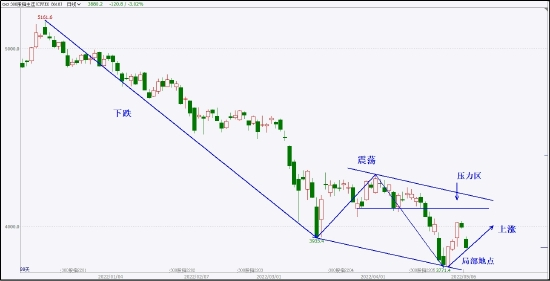沪深300股指在经过前期一轮下跌释放之后,进入到震荡整理之中,随着指数K的生长,展现的形态也愈加清晰,呈现出弱势震荡下行态势。指数连续的上涨,确认了3771的局部低点,后市需要密切关注下行通道线上轨对指数的压制作用。