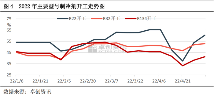 下游制冷剂6月份或陆续进入淡季,终端需求有减弱的可能,制冷剂企业开工难有上行,维持当前开工是最好的预期,终端利空作用力或能显现。