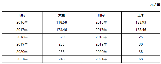 表3 黑龙江大豆、玉米补贴情况