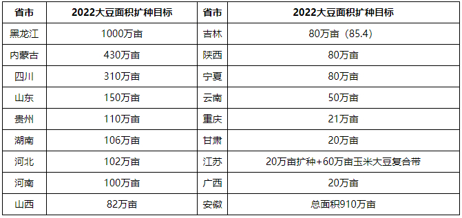 表2 18省市2022年大豆面积扩种目标