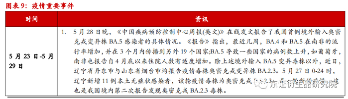 (1)5月28日晚,《中国疾病预防控制中心周报(英文)》在线发文报告了我国首例境外输入奥密克戎变异株BA.5感染者的具体情况。5月27日0-24时,辽宁新增11例本土无症状感染者,该轮疫情毒株为奥密克戎BA.2.3,是一轮新的疫情。