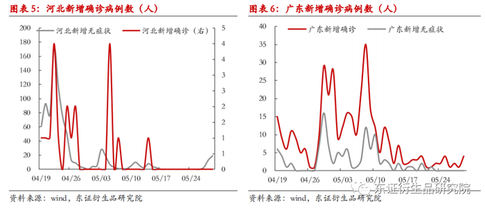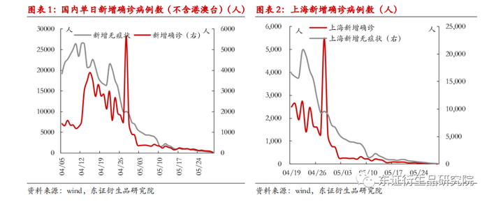 上海新增病例降至2位数水平,北京疫情也出现显著好转。国内疫情形势大幅缓和,全国复工进度有望在端午节后加快推进。上海近期发布《上海市加快经济恢复和重振行动方案》,6月1日开始上海进入公共场所和搭乘公共交通须持72小时内核酸阴性证明,同时取消企业复工复产白名单制,但目前看上海距离完全解封仍然存在一定障碍,关注近期政策落实情况。北京社会面基本实现清零,多个区也陆续迎来解封,关注社会活动和物流运输恢复情况。近期国家与地方层面陆续推出经济刺激政策,但目前效果有限,关注后续疫情管控进一步放松之后是否会有更具刺激力的政策出台。
