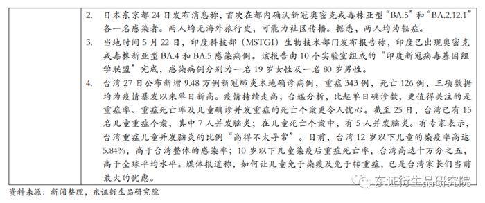 (3)当地时间5月22日,印度科技部(MSTGI)生物技术部门发布报告称,印度已出现奥密克戎毒株新亚型BA.4和BA.5感染病例。该报告由10个实验室组成的“印度新冠病毒基因组学联盟”完成,感染病例分别为一名19岁女性及一名80岁男性。