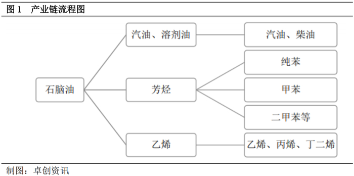 从下图来看,三苯直接原料是石脑油,作为芳烃行业龙头,其在产业链中偏上端,因此与原油关联性不言而喻。