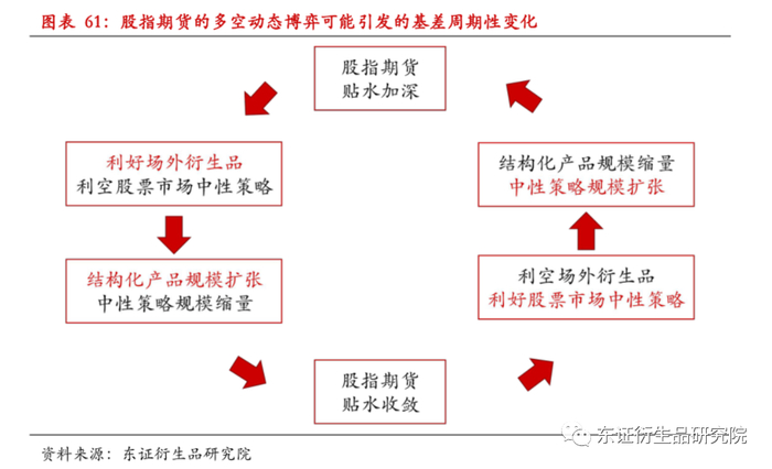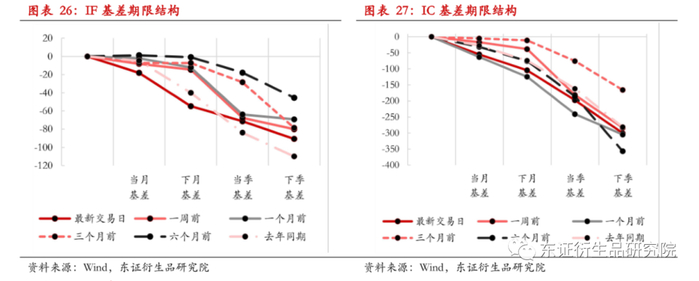 IC的多头套保需求主要来自雪球等结构化产品,由于中证500指数波动率大且IC的贴水较高,结构化产品大多挂钩中证500指数,其规模的快速扩张给IC的交易结构带来了全新的变化。过去股指期货的套保需求以空头为主,而如今随着结构化产品多头套保需求的增加,股指期货的多空套保需求趋于均衡,博弈程度亦有所加剧。在多空套保需求相对平衡的情况下,股指期货的基差很可能由于多空双方博弈力量的变化而呈现周期性变化的规律:当股指期货处于深度贴水,多头展期获得可观收益,多头的逐利将导致多头力量逐渐增加甚至大于空头,股指期货基差持续收敛;而随着股指期货基差的收敛,多头的展期收益缩减,空头对冲成本占优,导致多头力量减弱空头力量增强,又将导致股指期货基差走阔。21年三季度至今IC的基差变化便充分展示了多空博弈力量的周期性变化。结构化产品的兴起带来了IC基差的“新常态”,这意味着历史性规律极有可能失效,对IC套保需求的分析需要结合更多场外衍生品对冲的逻辑,做出合理推断。关于场外衍生品做市商股指期货持仓规模的具体估算方法以及对IC基差的影响可以参考热点报告《如何看待雪球持续敲入对IC基差的影响》。除了报告里提到的方法,对雪球未来套保需求的估算也需要进一步参考市场发行热度和监管政策的变化。