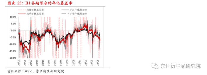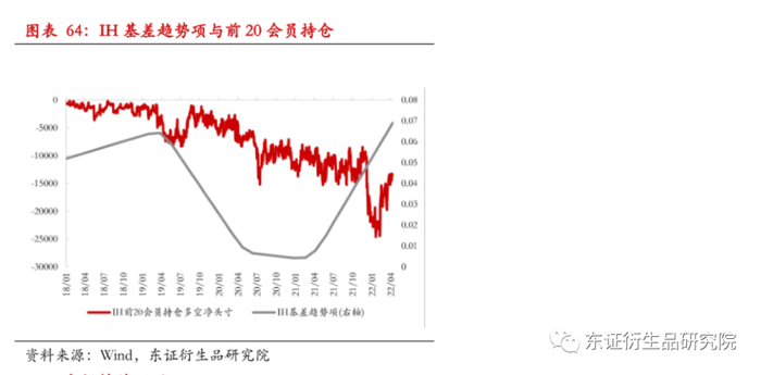(1)上证50指数成分股以大盘蓝筹为主,选股的alpha收益有限,因此IH空头套保需求最小,基差也是贴水幅度最小的,空头对冲成本最低,打新策略常常使用IH来对冲底仓,导致IH主要的空头对冲需求不是来自于中性策略,而是打新策略,因此IH的贴水程度往往与打新收益挂钩;