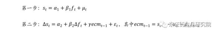 易知股指期货与现货收益之间具有长期协整关系,单步OLS回归描述了两者间的长期协整关系,而短期误差会累积并且具有自相关性与均值回归的特征,无法在回归模型中体现,因此可以引入误差修正模型,实际上是将回归分成了两步: